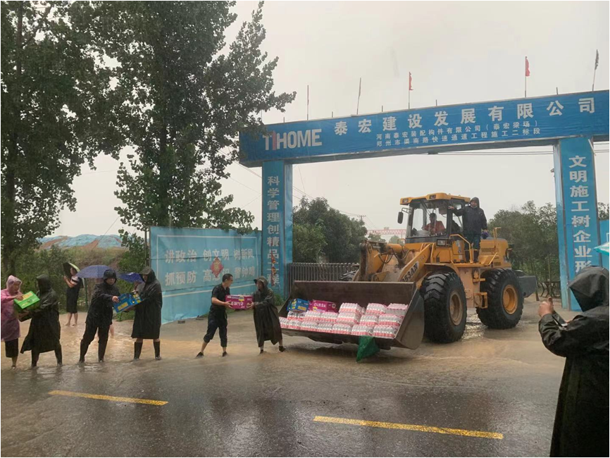 险情就是命令!7月20日下午3点,问鼎娱乐下载联合河南泰宏装配构件有限公司一起组织装载机、人员参与荥阳市政府和豫龙镇政府组织的陈庄村、关帝庙村的抗洪抢险、运送救灾物资工作,连续奋战8小时,险情得到控制。
