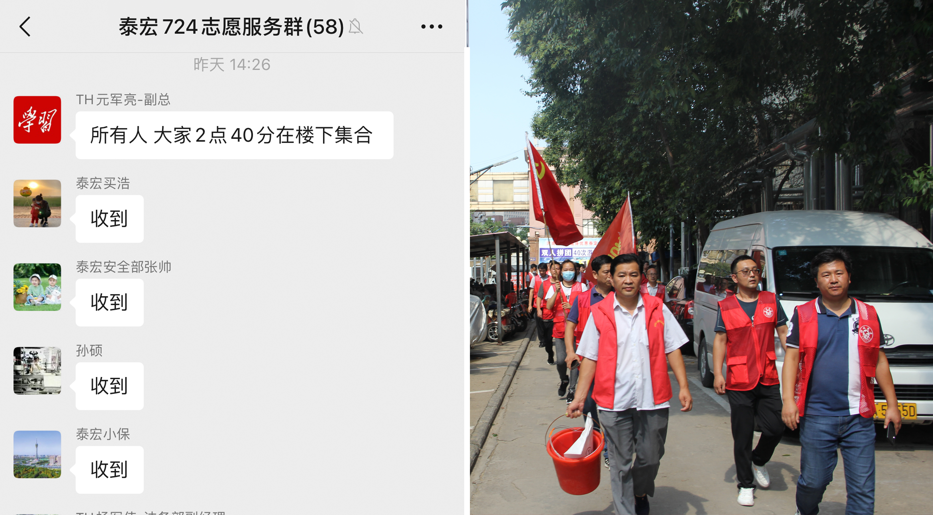 紧急通知!!!7月24日下午2点26分,泰宏支援服务群里不断发出叮叮叮的消息声:“所有人请于下午2点40分在公司楼下集合”。泰宏建设党支部书记元军亮说,刚接到郑州市金水区东风路街道办事处的通知,要带领30余名党员、志愿者赶赴同乐花园社区东北门集结待命。